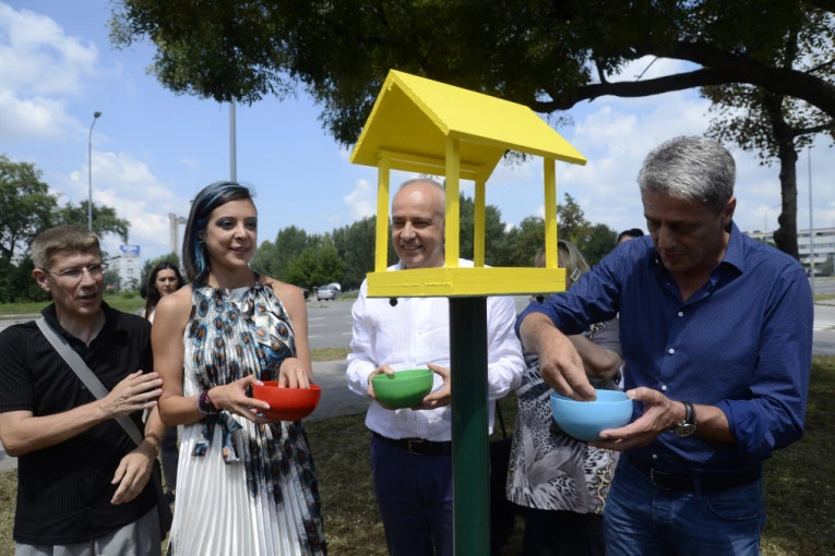 - Zahvaljujući građanima iz ovog dela grada, saznali smo da se jata vrabaca svakodnevno okupljaju u ovom delu Bloka 28. Njih oko 70 boravi u žbunju oko parkinga, a često su bez hrane. Činjenica je da ove ptice nestaju. U centru grada ih gotovo nema, povukli su se po obodima. Jedan od neprijatelja vrabaca jesu i savremene staklene zgrade, jer se često zalete u prozore i tako stradaju. Ono što građani takođe ne znaju jeste da vrapce nije dobro hraniti belim hlebom jer njihov digestivni trakt nema mogućnost da razgrađuje ugljene hidrate ovog tipa, zbog čega često obolevaju, pa i umiru. Zato smo im obezbedili ove tri kućice sa hranom, najraznovrsnijim semenkama koje su namenjene njima - objasnila je Martićeva.