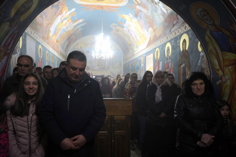 Foto: TanjugNakon liturgije, vernici su se uputili svojim domovima kako bi dočekali položajnika, nakon čega će imati porodični ručak, kojem prethodi tradicionalno lomljenje česnice.