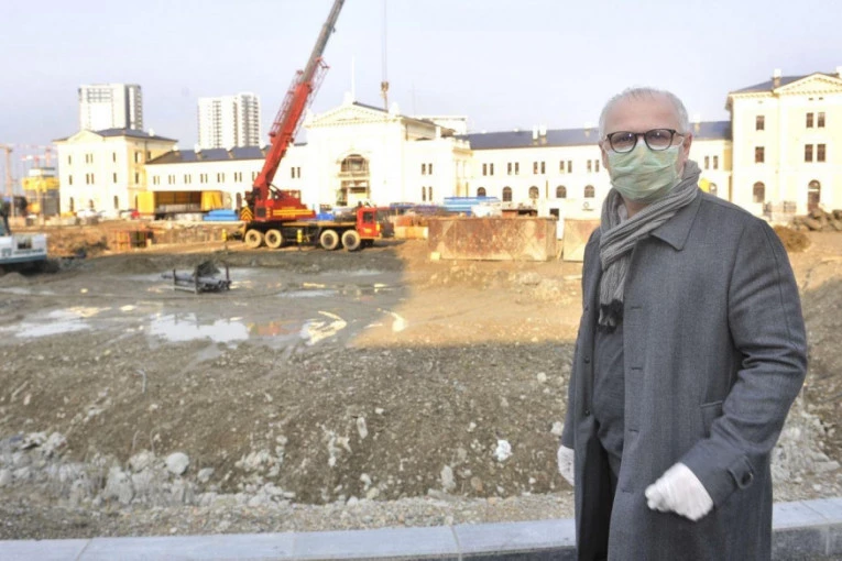Vesić je istakao da se ispred stare zgrade Železničke stanice završavaju potporni zidovi i betonska ploča, kao i da počinje postavljanje granitnih ploča za podijum koji će služiti za državne manifestacije.