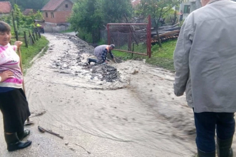 Bujični potoci su se izlili na lokalnom putu, pa su mnoge kuće odsečene i meštani ne mogu da im priđu.