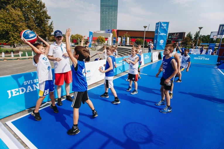 Plato ispred Poslovnog centra Naftne industrije Srbije u Beogradu pretvoren je danas u svojevrsnu košarkašku arenu na kojoj su svoje veštine iskazali najmlađi košarkaši i košarkašice Srbije – deca uzrasta od 7 do 10 godina.