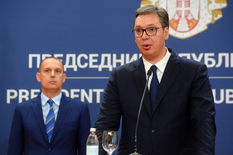 Predsednik Srbije Aleksandar Vučić obratio se novinarima na konferenciji nakon uručenje ugovora o radu najboljim studentima.