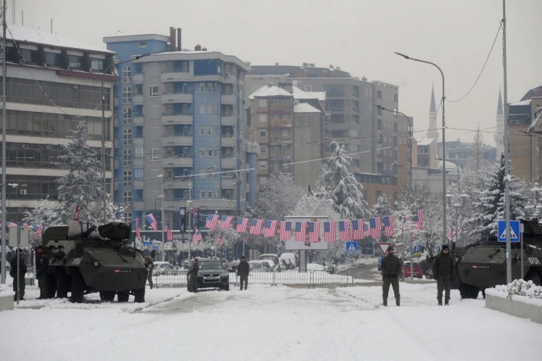 Na ulazu u južni deo grada i dalje je stacioniran austrijski kontigent KFOR-a i pored tri oklopna borbena vozila nalaze se i kamion KFOR-a i dva džipa Karabinjera iz sastava KFOR-a.