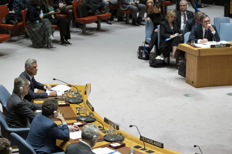 Kosovski predsednik Hašim Tači rekao je večeras na sednici Saveta bezbednosti UN da Kosovo nije za konflikt, te odbacio sve primedbe Srbije, koje je na sednici izneo predsednik Srbije Aleksandar Vučić, pozivajući se na odluku Međunarodnog suda pravde, koja je doneta, kako je istakao, upravo na inicijativu Srbije.