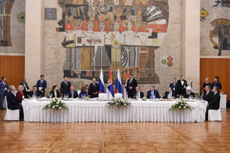 Predsednik Srbije Aleksandar Vučić priredio je danas popodne svečani ručak u čast predsednika Ruske Federacije Vladimira Putina, na kojem je 100 zvanica.
