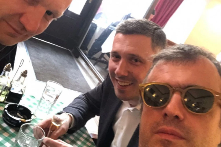 (FOTO) OVO OZBILJNA OPOZICIJA? Usred bela dana Sergej sa Boškom i Đikijem cirka rakiju i planira da RUŠI DRŽAVU!