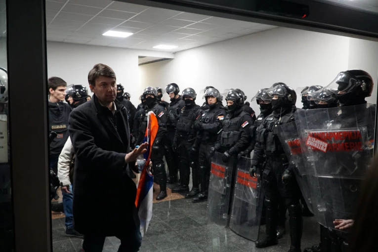 Foto: Tanjug/D. KUJUNDŽIĆ- Sve je bilo mirno, a onda sam dobio poziv od kolega u Aberdarevoj. Kada sam sišao dole, gomila ljudi već je bila na ulazu. Počeli smo da se ubeđujemo, da im objašnjavamo da to nije način. Stali smo na vrata da ih sprečimo, međutim Boško Obradović i ostali su krenuli, izgurali su nas. Ja sam naložio da se pozove policija - kaže Najdanović, prenosi RTS.