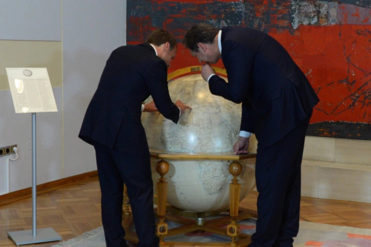 Jedan od emotivnijih delova posete francuskog predsednika Emanuela Makrona Srbiji svakako je bio vraćanje u prošlost, tačnije gledanje globusa - poklona koji je 1987. od tadašnjeg prvog čoveka Francuske, Fransoa Miterana, dobio predsednik Predsedništva SFRJ Lazar Mojsov.