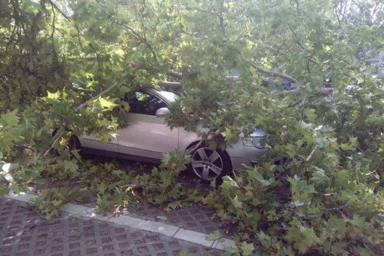 Automobili su se naši na meti drveća koje je padalo i pričinjavalo velilku štetu, a saradnik Republike Beni Komina je na licu mesta svedočio ovom užasu, snimivši zastrašujuće prizore s više parkinga u Borči.