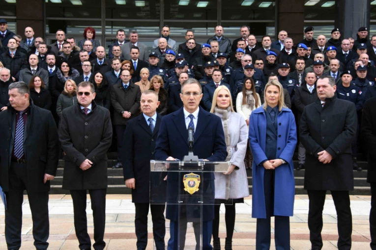 Foto: MUP Srbije- Ogromnim radom ljudi u Ministarstvu unutrašnjih poslova i u ovoj godini nastavili smo sa trendom smanjenja stope kriminaliteta. Za prvih 11 meseci na teritoriji Republike Srbije evidentirano je 73.634 krivičnih dela, što je smanjenje u odnosu na isti period prošle godine kada je bilo 77.724 krivičnih dela - rekao je Stefanović.