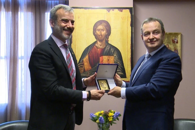 Foto: www.mfa.gov.rsOvom prilikom dodeljena mu je Hilandarska spomenica arhimandrita Metohija i bratstva manastira Hilandara za dobročinstvo i pomoć u vreme obnove manastira kao i za zasluge u zaštiti i odbrani državnih i nacionalnih interesa.