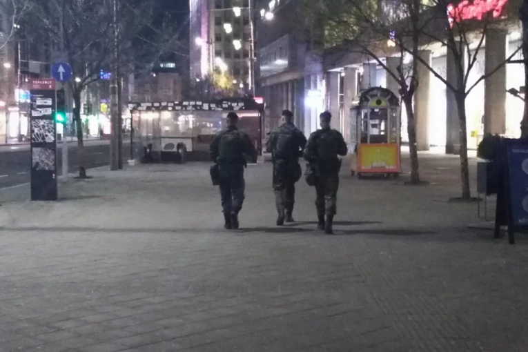 20.22 - U centru Beograda, na Terazijama, vidljivo je i prisustvo vojnih patrola