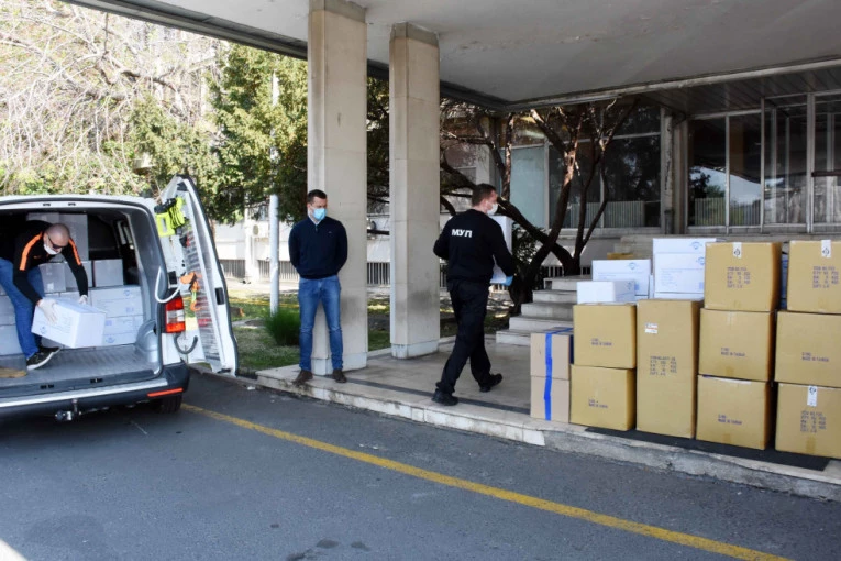 Foto: MUP SrbijeDonaciju čini 3.000 kapa, 600 vizira, 200 zaštitnih naočara, 3.000 maski, 100 komada zaštitnih maski sa filterom, 3.000 mantila i isto toliko nazuvaka.