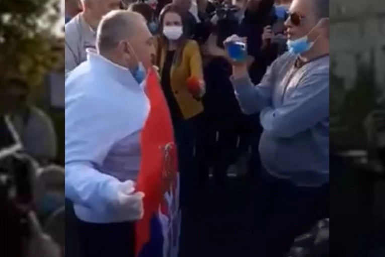 Ispred srpskog parlamenta, okupila se i nekolicina nezadovljnih građana koja je skadirala parole protiv lidera opozicije, što je bio i okidač da dođe do žustre rasprave u koju se uključio i sam Trifunović.