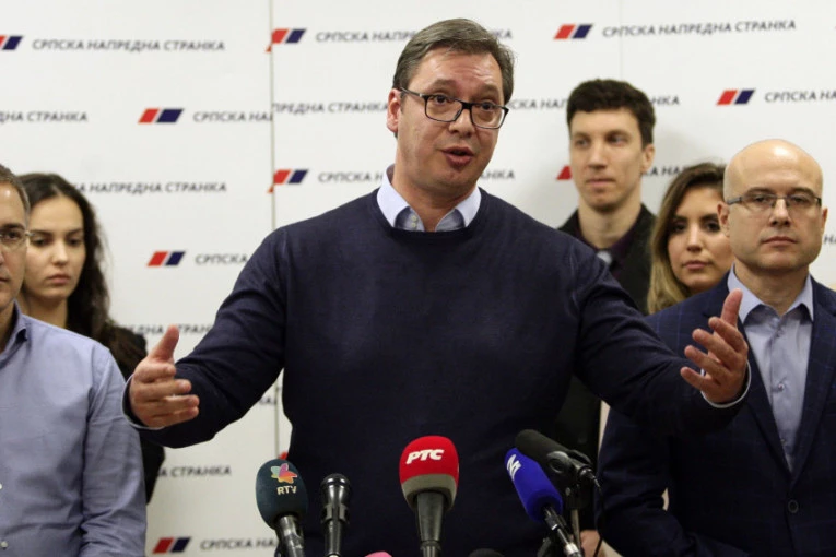 Foto: Tanjug/S. RADOVANOVIĆ- Bio je jedan mali incident u Popincima, u kojem niko povređen ali nadležni organi treba da preduzmu mere prema svima koji su u tome učestovali - rekao je Vučić na konferenciji za novinare u sedištu SNS po zatvaranju birališta.