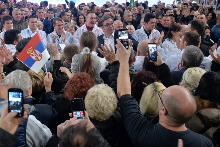 - Prvo želim da se se izvinim narodu, jer je hiljade ljudi ostalo ispred hale. Hoću da kažem da Srbija jeste na dobrom putu. Posle mnogo godina, posle 15 godina urušavanja svega što smo imali, pljačkaških privatizacija, teških mera, koje su pale na leđa našim penzionerima. Hvala njima, beskrajno vas volim - rekao je Vučić i naglasio da je Srbija poštovana svuda u svetu, da je njen javni dug manji, da se nezaposlenost prepolovila, da su otvorene fabrike za obične ljude koji nisu imali posao.