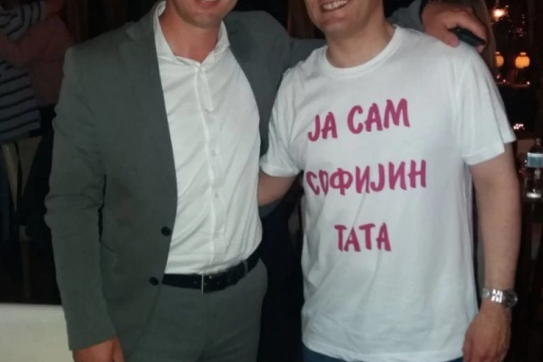 Na proslavi je bilo veoma veselo, novopečeni tata je bio u euforiji sve vreme, gosti su mu, kako običaj nalaže cepali košulje, a u jednom trenutku je obukao majicu sa natpisom "Ja sam Sofijin tata".