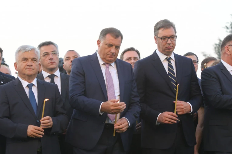 Foto: Tanjug/J. PAP- Danas je Srbija naš identitet. Nas Srba koji živimo van Srbije. Bila je garancija i onda kada je bilo potrebno da se skrasi naš narod, da ovde dođu i nađu svoje utočište. Naša sloboda je uvek zavisila od toga i uvek je bila sigurna tamo gde imamo državu. I danas svesni ogromne političke državne zablude koja se zvala Jugoslavija, mi danas u RS nemamo pravu ni na jednu zabludu. Mi smo Srbi, mi želimo mir i slobodu! Ne želimo ništa od drugih da uzimamo, ali smo spremni da branimo i očuvamo naše - istakao je Dodik, nakon što se zahvalio predsedniku Srbije Aleksandru Vučiću, zbog, kako je ocenio, hrabrosti da počne sa obeležavanjem Dana sećanja na žrtve u zločinačkoj hrvatskoj akciji.