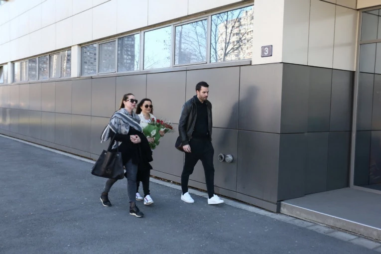 Filip Živojinović je došao u pratnji svoje majke Zorice Nakić i Aleksandrine mame Borke Mihajlović. Novopečene bake nisu skidale osmeh s lica, kao i ponosni tata. Borka je svojoj ćerki donela buket crvenih ruža koje simbolizuju ljubav.
