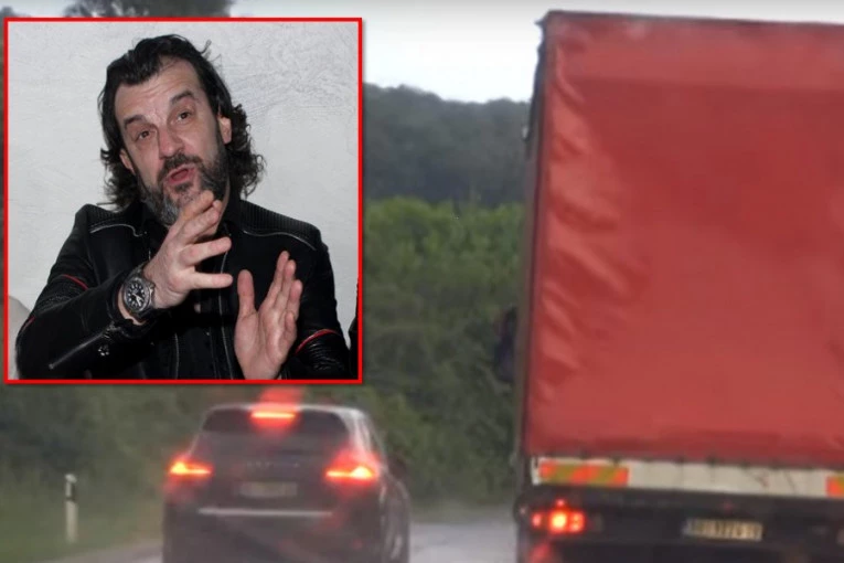Folker Aca Lukas uglavnom sam vozi automobil kada je na putu, a sada je usnimljen kada je nepropisno preticao jedan kamion.