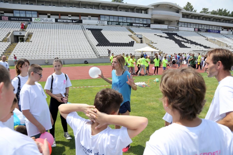Ovog vikenda na stadionu crno-belih održana je manifestacija “Sportom do osmeha” u organiziaciji Srpskog saveta za rekreativni sport osoba sa invaliditetom (ROSI) čiji je višegodišnji član pevačica Marina Tadić, koja mališanima sa posebnim potrebama drži treninge.