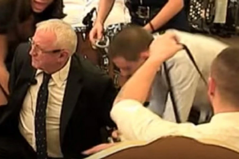 Naida i Tatjana su ga privele i stavile mu lisice na ruke pred svima.