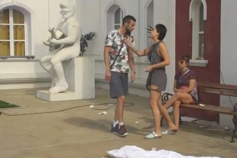 - Izaći ćeš odavde, tebra. Jesi ti normalna? Usra*u ti se u život. Sad ću da raskinem sa Andrijanom, a tebi ću da se use*em u život! Iselićeš se iz Beograda! Šta hoćeš ti od mene? Tri šamara mi lupila! Produkcijo, zahtevam da je izbacite! Šta hoćeš od mene, rugobo jedna mala? Sad će da te izbace napolje 100 posto, tebra! Ajde, udari mi šamar. Što se sada ne sečeš? Što se sada ne sečeš? Sad ćeš da se isečeš 100 posto! Ideš kući, tebra, nećeš više preko mojih leđa da ostaješ u rijalitiju! Ideš kući, smrdljivice! Možeš da ga duvaš, smrdljivice mala!