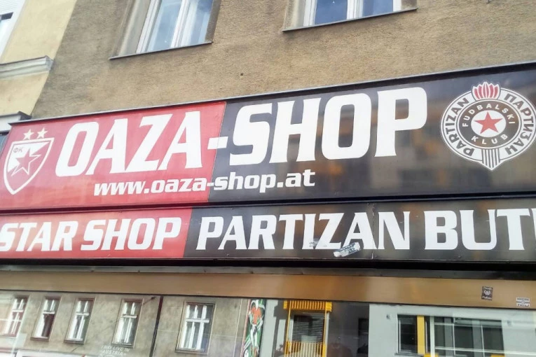 Među brojnim objektima koji pripadaju našim zemljacima, lako je bilo uočiti i "OAZA SHOP" u kome se prodaju navijački rekviziti srpske reprezentacije, ali i Partizana i Crvene zvezde. Nema sumnje da je ova roba naročito tražena poslednjih dana, s obzirom da se sve više diže temperatura pred start susreta.