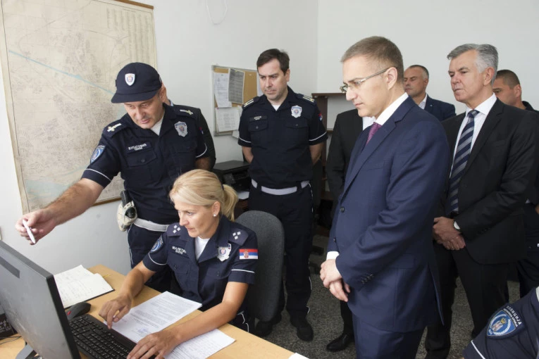 Foto: MUP Srbije- Zapisnik o uviđaju, koji sačine, saobraćajni policajci ubuduće će slati direktno na server Udruženja osiguravača Srbije, tako da građani više neće morati da dolaze u policiju da lično uzimaju zapisnik, niti će više plaćati taksu za izdavanje njegove papirne verzije. Zahvaljujući ovom sistemu osiguravajuće kuće će građanima moći da u najkraćem mogućem roku isplate odštetu - rekao je Stefanović, koji je prisustvovao prezentaciji rada ovog sistema u Saobraćajnoj policijskoj ispostavi "Zapad" u Novom Sadu.