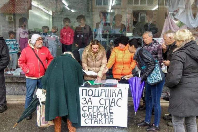 Bivši radnici Srpske farbike stakla iz Paraćina, koji su posle stečaja u toj fabrici izgubili posao i sebe nazivaju "Otpušteni preko fejsa", prikupljali su u centru grada potpise za peticiju "Podrška za spas SFS".