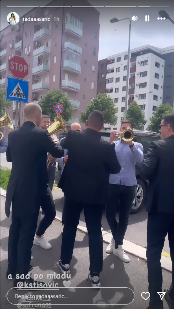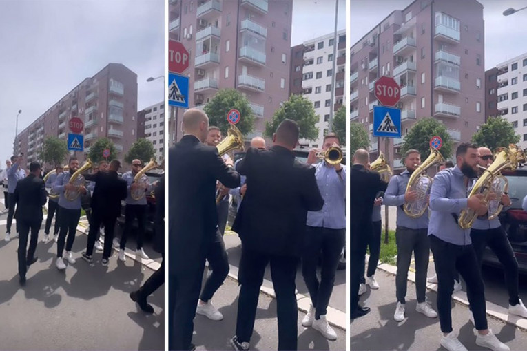 Sofra je danas sa kumom stigao po mladu i to u besnom automobilu marke "mercedes". Ispred njene zgrade dočekali su ga trubači, a muzičark je pokazao da ume da daje bakšić onako kako ga i prima.