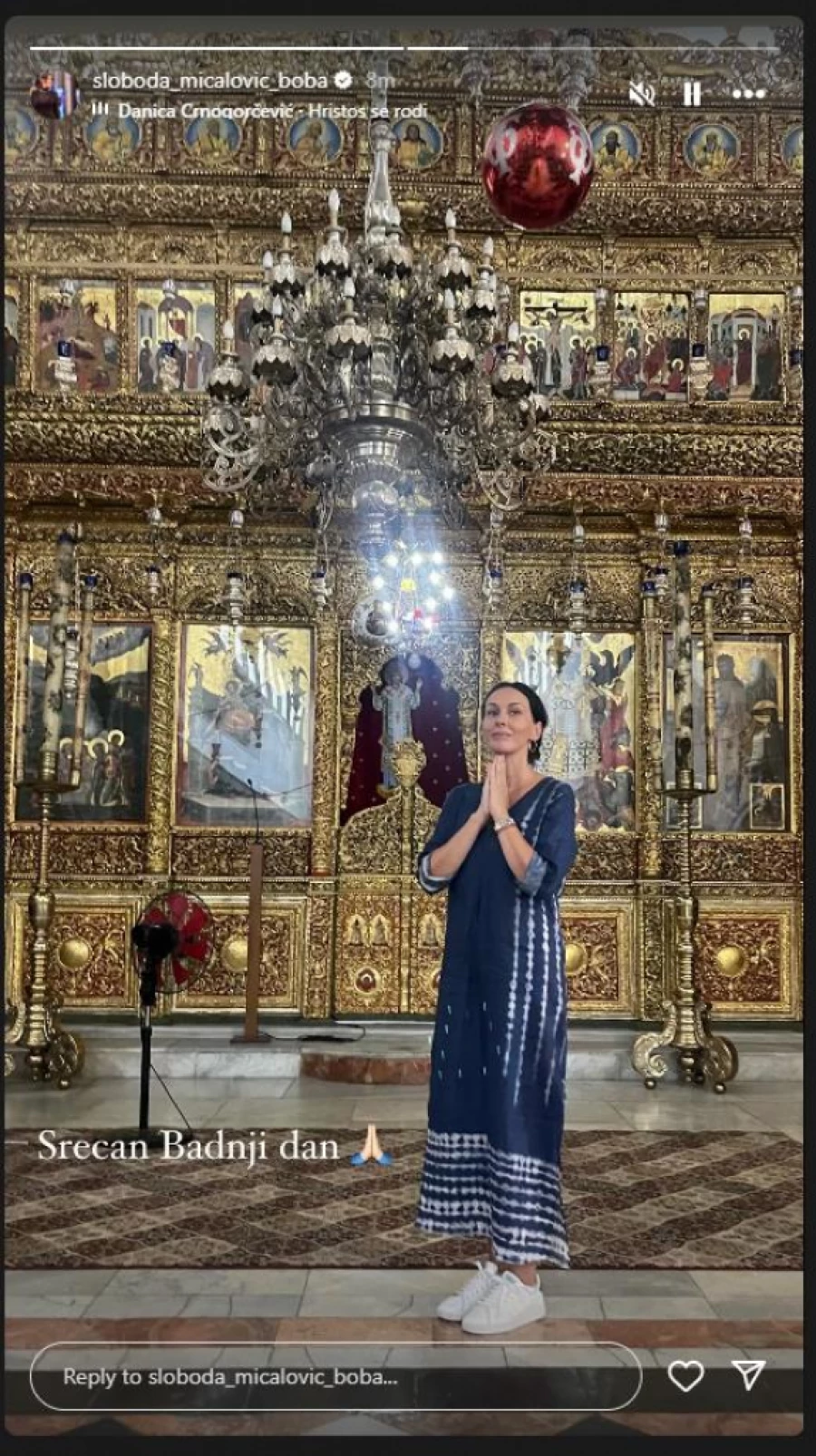 Vernici pravoslavne veroispovesti danas slave Badnji dan - dan uoči najradosnijeg hrišćanskog praznika Božića. Lepa glumica Sloboda Mićalović je na svom profilu objavila fotografiju skrštenih ruku kao u molitvi. Na svom Instagram storiju glumica je sada poželela srećan Badnji dan.