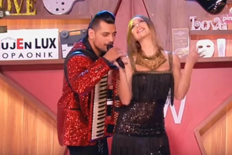 Nakon fenomenalnog nastupa i izvođenja pesme "Čik pogodi", ovaj estradni par na sceni se i poljubio.