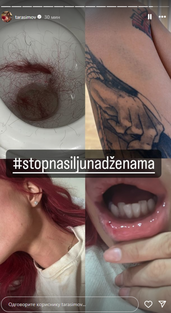 Tara je danas podelila uznemirujuće fotografije, na kojoj pokazuje povrede na telu, uz poruku "stop nasilju nad ženama", a niko i dalje ne zna ko stoji iza ovog napada i šta se zaista dogodilo Simovoj.