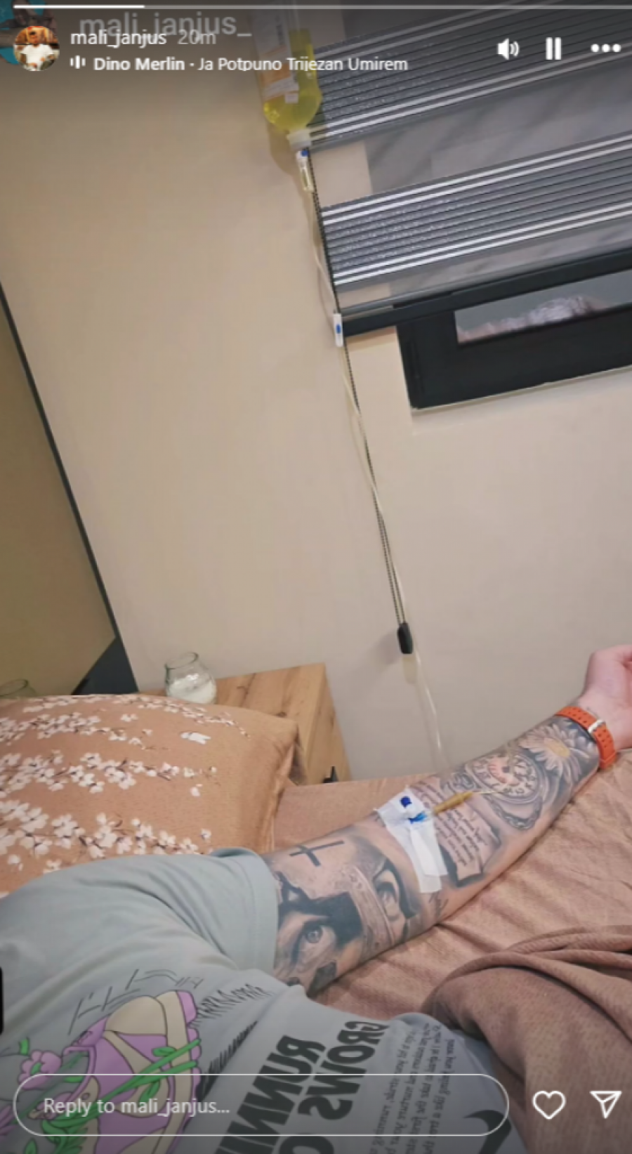 Međutim, radost koja je nastala nakon objave porodične slike brzo je zamenjena zabrinutošću, jer je Janjuš ubrzo podelio još jedan snimak koji je izazvao zabrinutost među njegovim obožavaocima. Na ovom snimku, koji je objavljen na njegovom profilu na društvenoj mreži Instagram, Janjuš je ležao u krevetu, priključen na infuziju, što je jasno ukazivalo na to da se nalazi u lošem zdravstvenom stanju. Iako nije dao konkretne informacije o tome šta je uzrok njegovog stanja, ovo je izazvalo još više pitanja među njegovim pratiocima, koji su se pitali šta se zapravo dešava sa njim.