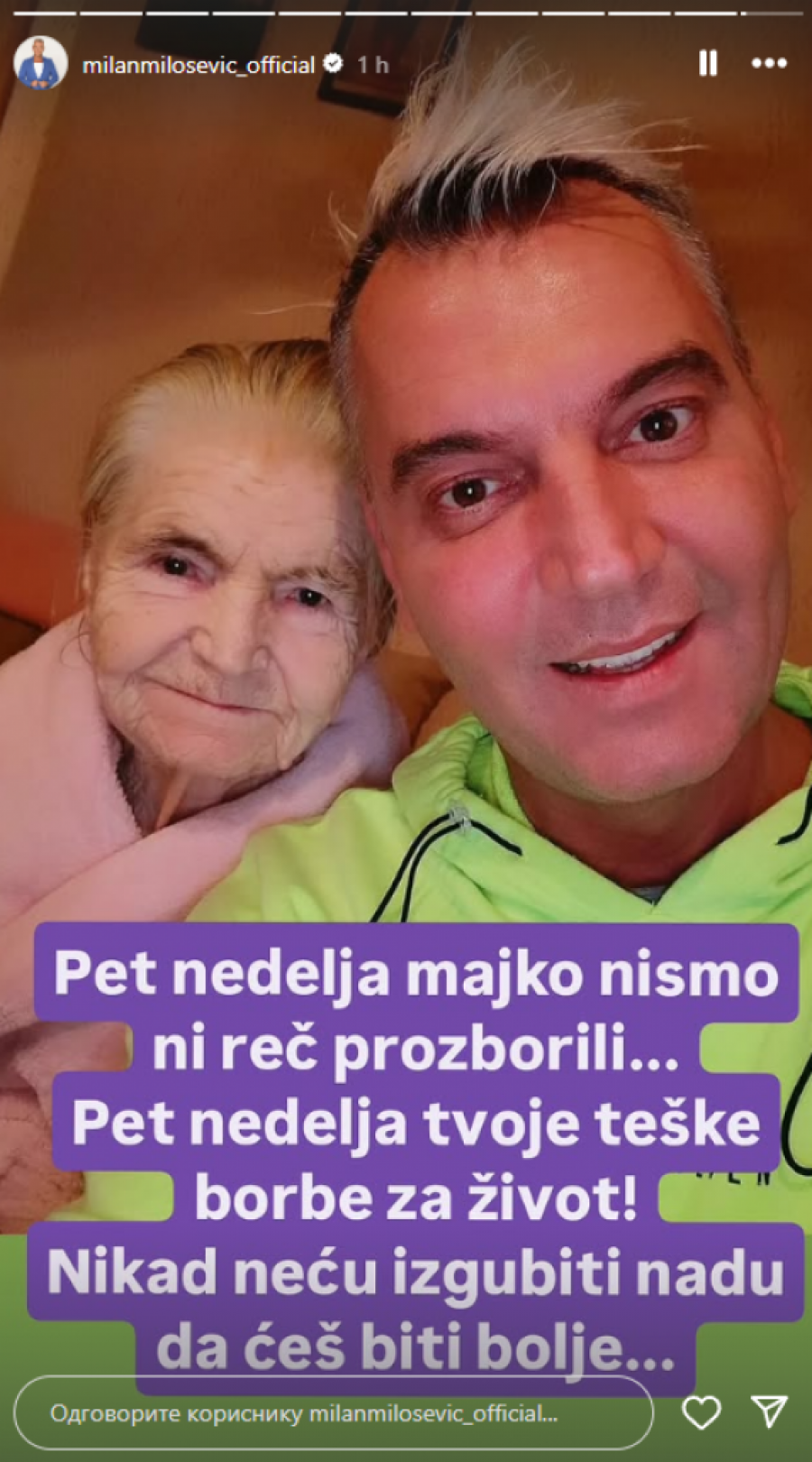 Milan Milošević je nedavno otvoreno govorio o teškim trenucima koje je prošao u vezi sa zdravljem svoje majke. U emisiji "Premijera – vikend specijal", on je podelio emotivnu ispovest, otkrivajući kako je bilo najteže kada ju je ispratio u operacionu salu.