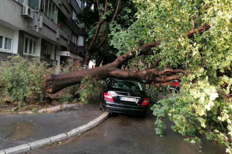 NEVREME NAPRAVILO HAOS U ZEMUNU: Drvo palo na automobil u Ohridskoj