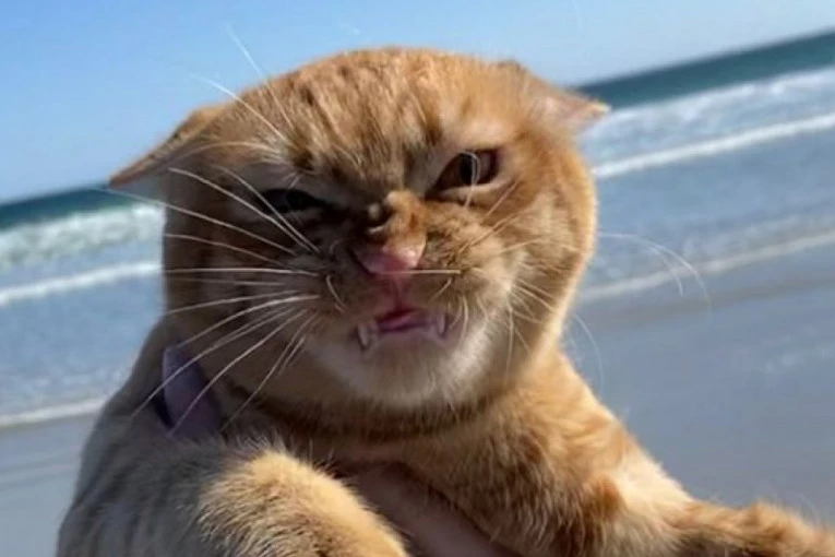 Vlasnica stalno slika svog kućnjeg ljubimca macu i kaže za nju da OBOŽAVA plažu, ali ne i vetar!