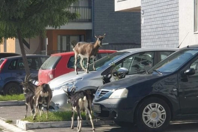 Foto: facebook.com/Blokče 72Fotografija je navodno nastala na Novom Beogradu, a na njoj se vidi nekoliko koza na parkingu, od kojih jedna stoji na automobilu.