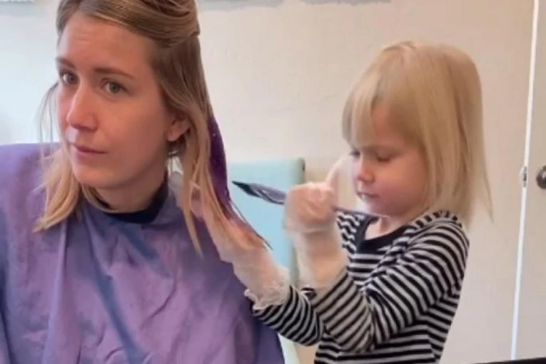 Tačnije, malena je dobila zadatak da ofarba svoju mamu u boju lavande, a taj zadatak je veoma ozbiljno shvatila.