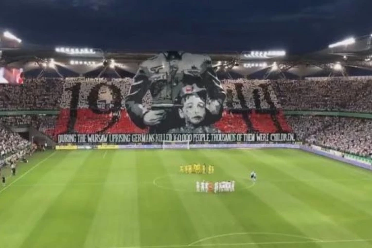 Foto: youtube.com/Aldi78"Legionari" su napravili transparent u čast 73. godine od pokretanj Varšavskog ustanka kojom je počelo oslobađanje Poljske od nacista.