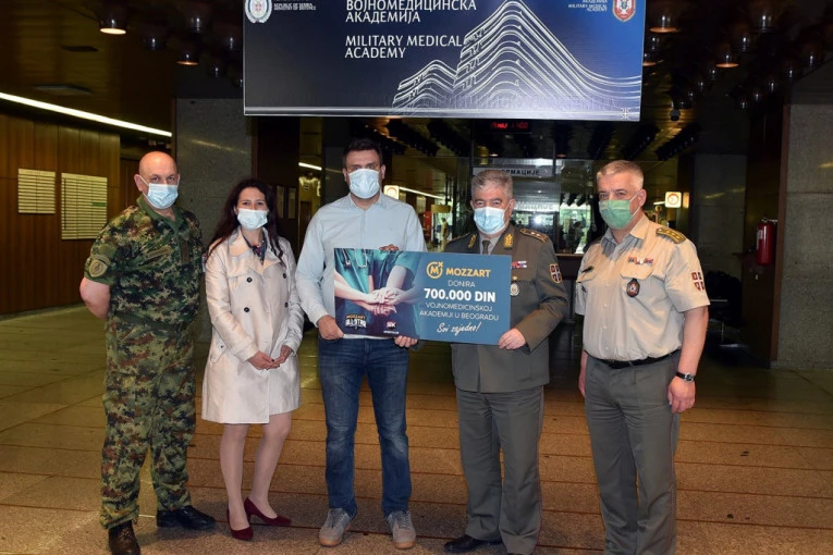 - Uprava za vojno zdravstvo Ministarstva odbrane izuzetno ceni saradnju s kompanijom Mozzart koja potiče još iz aprila 2018. godine kada smo potpisali ugovor o donaciji 400 televizora u vrednosti više od 11.000.000 dinara. Od tada se Mozzart kontinuirano ponaša kao izuzetno društveno dogovorna kompanija te je i na početku epidemije virusa korona u našoj zemlji ova kompanija ponudila pomoć vojnom zdravstvu. S obzirom na naše dovoljne kapacitete preusmerili smo ih da pomognu civilnim zdravstvenim ustanovama kojima je pomoć bila potrebnija. Ova donacija u vrednosti 700.000 dinara biće iskorišćena za nabavku potrebne opreme u Vojnomedicinskoj akademiji. Imajući u vidu broj kvadratnih metara radnih površina u ovoj vojnozdravstvenoj ustanovi, upotrebićemo namenjena sredsta za nabavku aparata za dezinfekciju i čišćenje prostora, čime ćemo dodatno poboljšati uslove za pacijente i rad zaposlenih - naveo je general Jovičić.