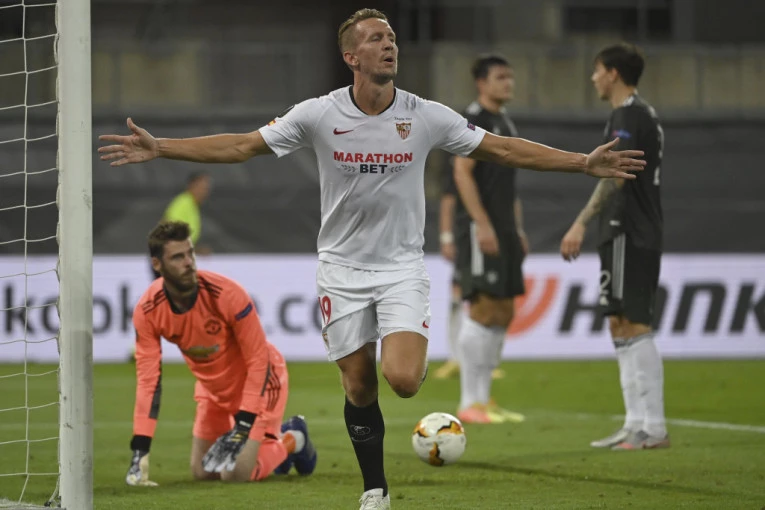 Foto: Tanjug/APFudbaleri Sevilje plasirali su se u finale Lige Evrope pobedom nad Mančester junajtedom od 2:1 posle preokreta, na "Rajn Energi" stadionu u Kelnu.
