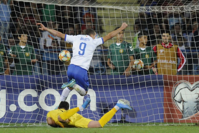 Foto: Tanjug/APBeloti u 22. i Berardi u 68. minutu doneli su trijumf ''azurima'', a selekcija BiH je ostala na samo dva osvojena u ovoj grupi, pa će se u sledećem ciklusu takmičiti u nižem rangu, u Ligi B.