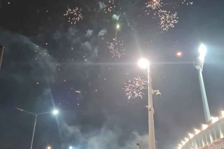 Foto: Dražen OstojićU želji da svoje miljenike obraduju i okuraže pred početak meča Lige Evrope, navijači su iza južne tribine zapali spektakularan vatromet!