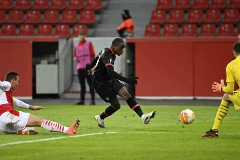 Foto: Tanjug/APStrelci za Bajer su bili Leon Bejli u četvrtom i 27, Florijan Virc u 55. i Lukas Alario iz penala u prvom minutu sudijske nadoknade vremena.