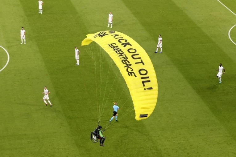 Naime, na teren "Alijanc arene" spustio se padobranac, a navijači, kao ni gledaoci kraj malih ekrana, nisu imali pojma o čemu je reč.