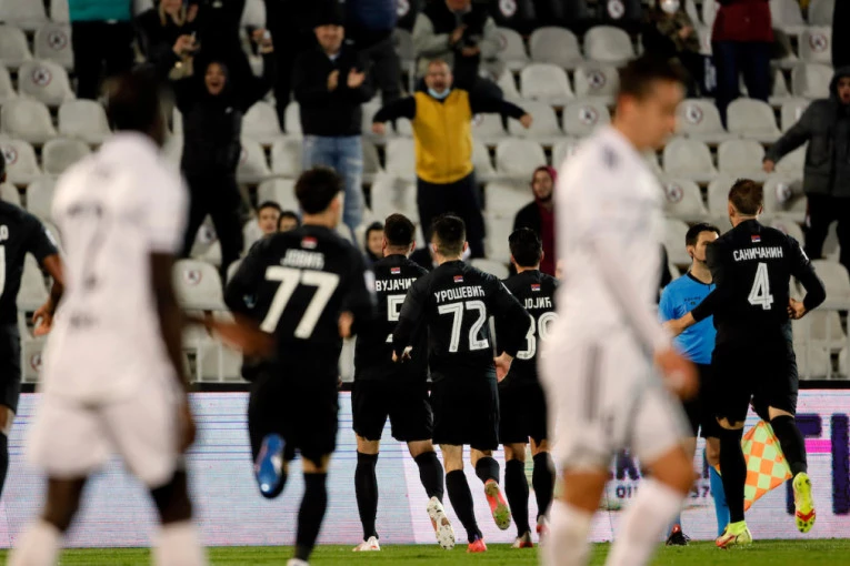 Crno-beli u nastavku igre kažnjavaju promašaje Čuke i prvo preko Vujačića, a zatim i Živkovića u nadoknadi prvih 45 minuta dolaze do prednosti od 2:0.