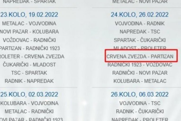 Zvanični sajt Superlige Srbije napravio je pravu pometnju, pošto na njemu stoji da se celo 24. kolo igra u subotu 26. februara.