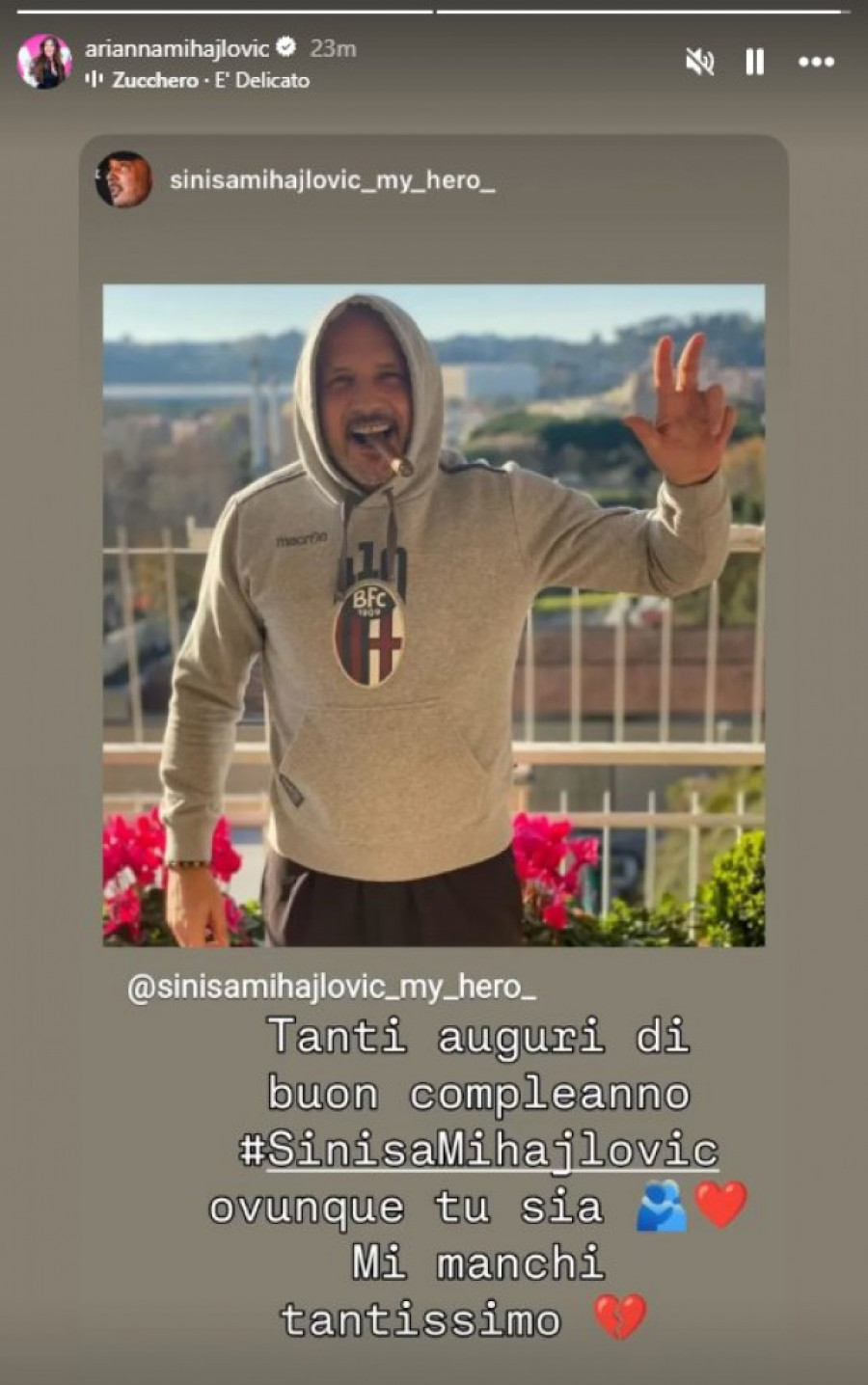 Povodom rođendana Siniše Mihajlovića oglasila se putem društveme mreže Instagram i njegova supruga Arijana Mihajlović, koja je iz Mihinu sliku, napisala:
